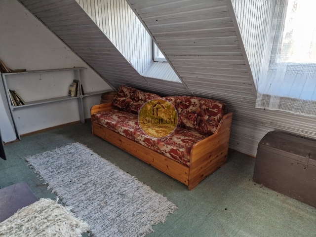 Földszint helyiségei: Déli fekvésű terasz, nappali, zuhanyzós fürdőszoba és wc egyben, főzőfülke, étkező. Tetőtérben 2 helyiség.